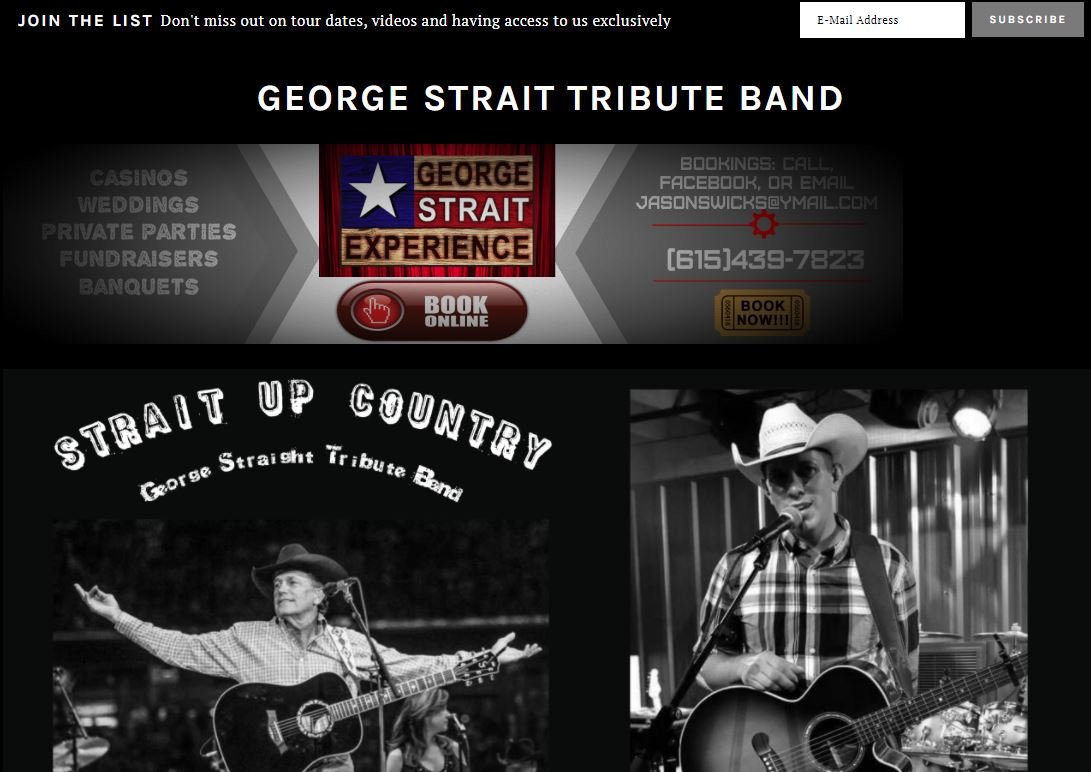 This was an add on site for a tribute band to George Strait. Came out great was starting to take off great before the pandemic, but he is still getting calls and they all enjoy the site greatly. We also connected this to facebook page for events and such so he can update without ever logging into the website.